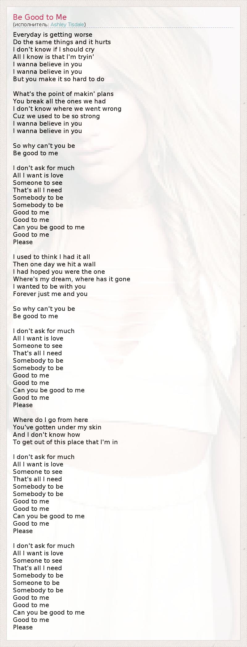 А как ты думаешь, о чем песня "Be Good to Me" ?