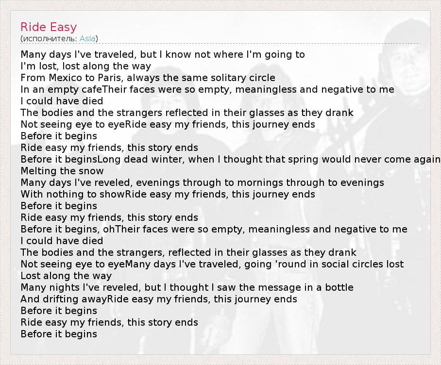 А как ты думаешь, о чем песня "Ride Easy" ?