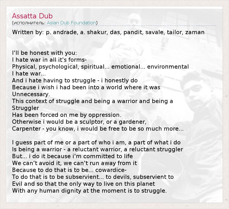 А как ты думаешь, о чем песня "Assatta Dub" ?
