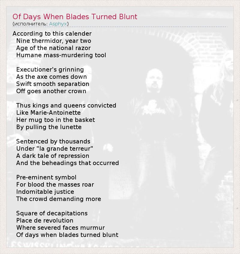 А как ты думаешь, о чем песня "Of Days When Blades Turned Blunt" ?