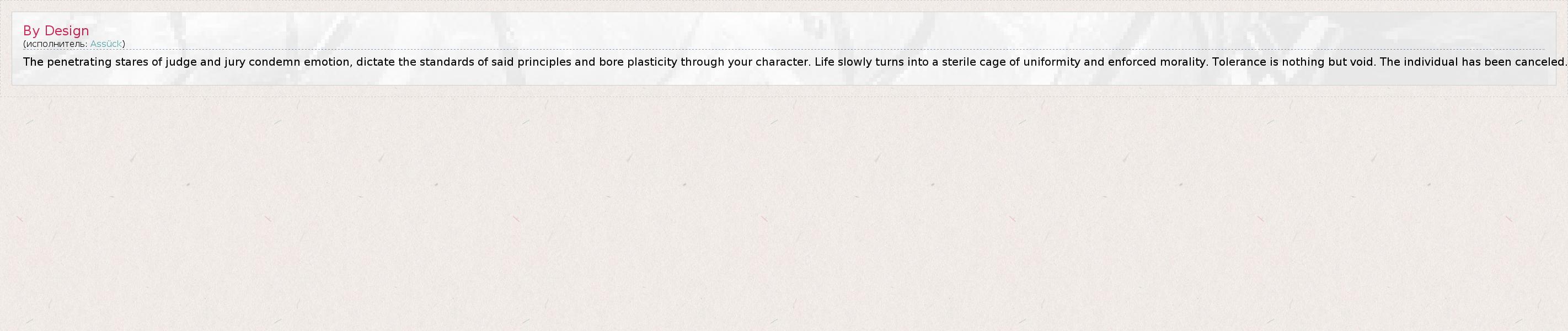 The penetrating stares of judge and jury condemn emotion, dictate the standards of said principles and bore plasticity through your character. Life slowly turns into a sterile cage of uniformity and enforced morality. Tolerance is nothing but void. The individual has been canceled.