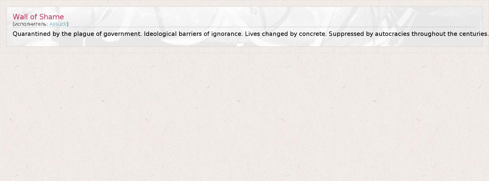 А как ты думаешь, о чем песня "Wall of Shame" ?