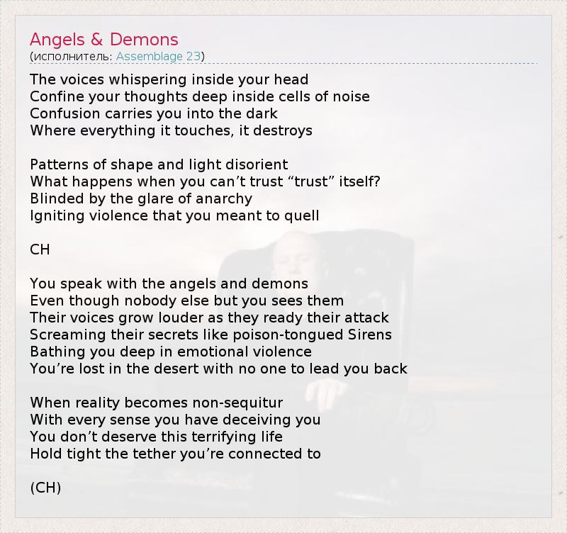А как ты думаешь, о чем песня "Angels & Demons" ?