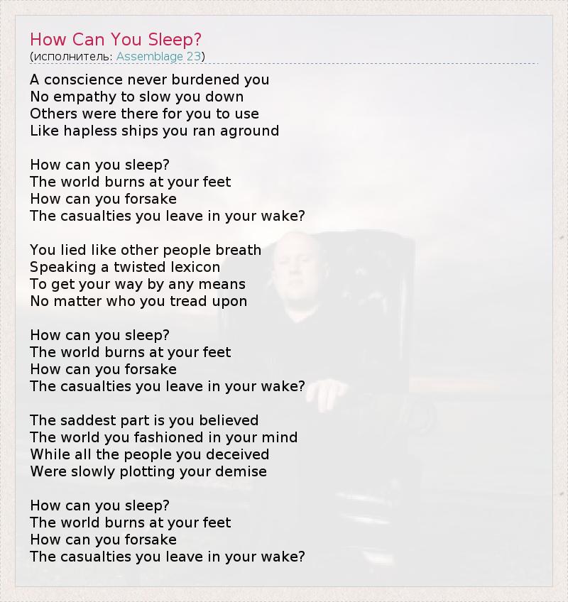 А как ты думаешь, о чем песня "How Can You Sleep?" ?