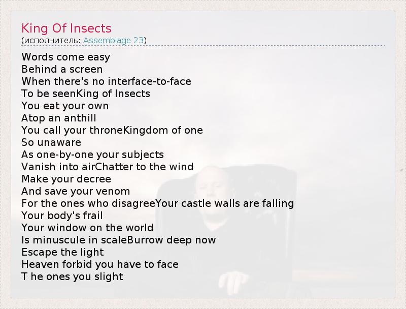 А как ты думаешь, о чем песня "King Of Insects" ?