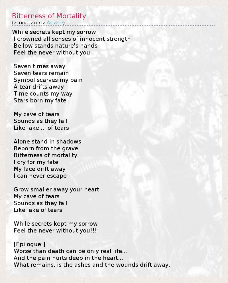 А как ты думаешь, о чем песня "Bitterness of Mortality" ?