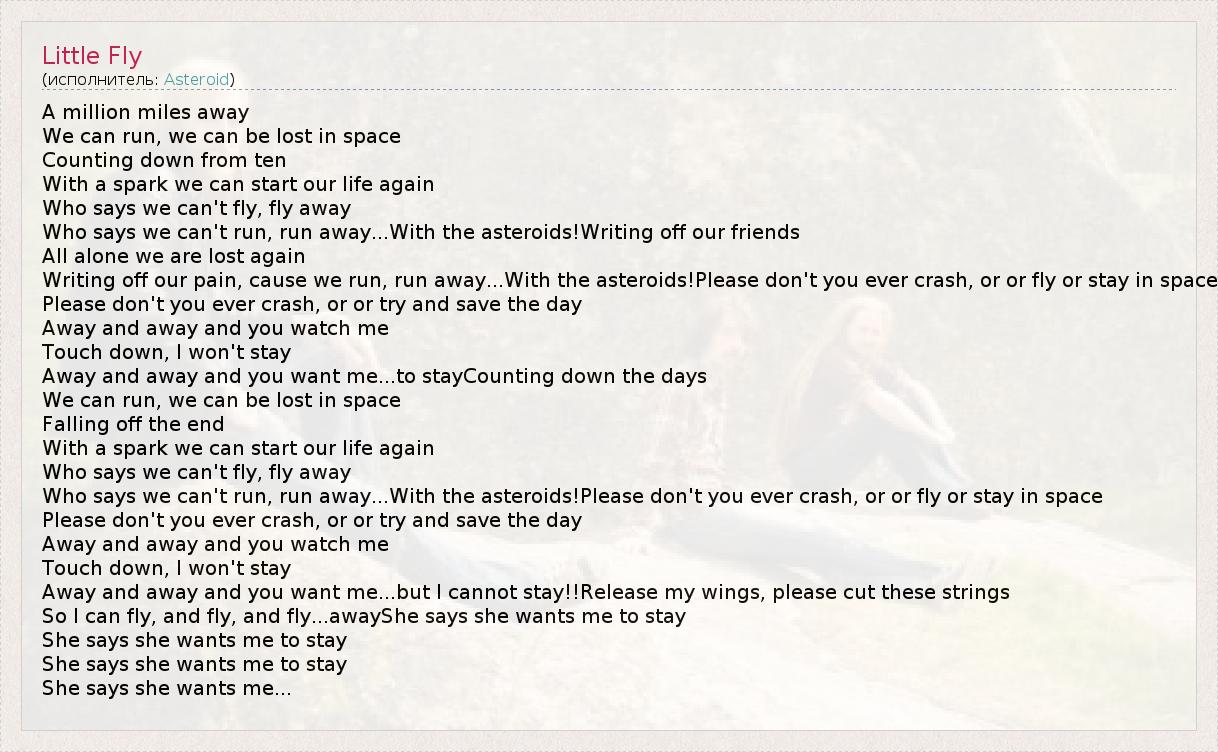 А как ты думаешь, о чем песня "Little Fly" ?