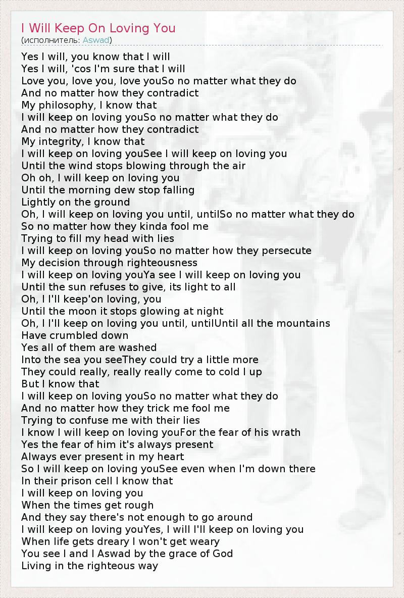 А как ты думаешь, о чем песня "I Will Keep On Loving You" ?