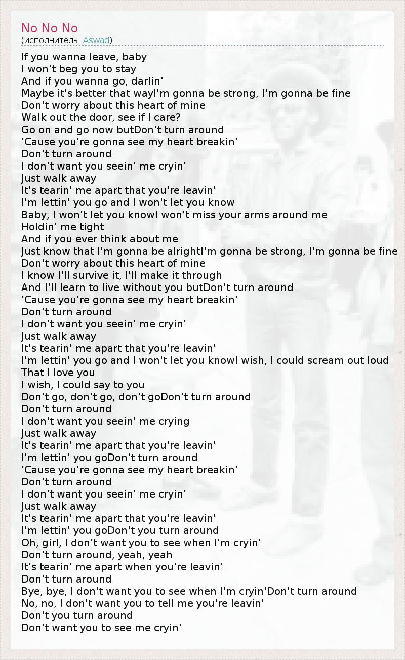 Bye, bye, I don't want you to see when I'm cryin'Don't turn around