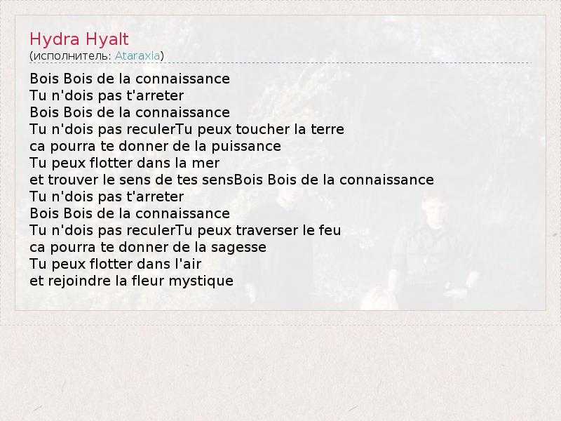 А как ты думаешь, о чем песня "Hydra Hyalt" ?