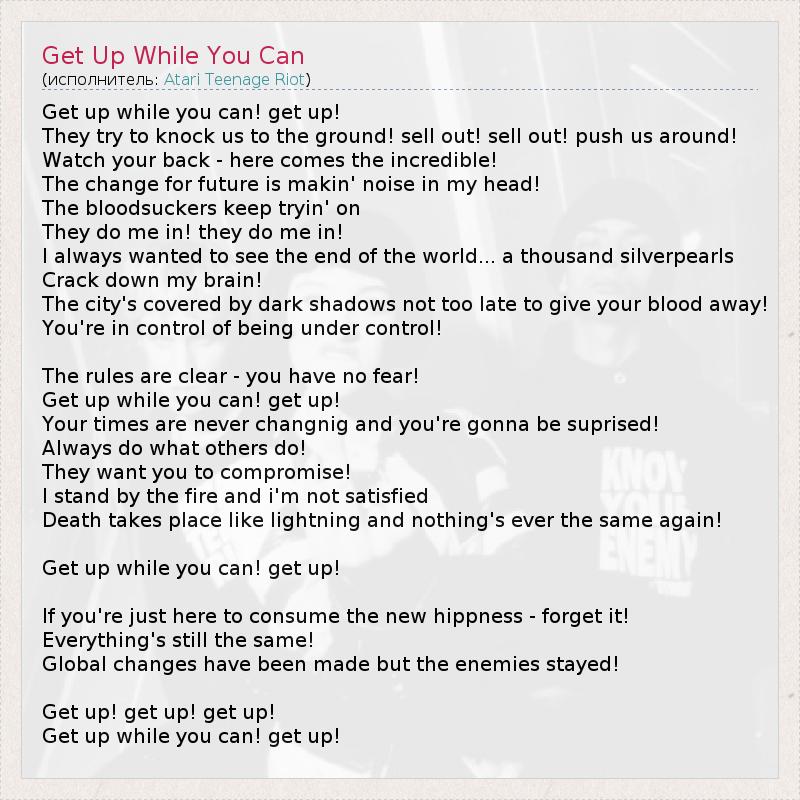 А как ты думаешь, о чем песня "Get Up While You Can" ?