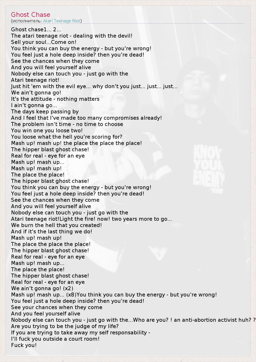 А как ты думаешь, о чем песня "Ghost Chase" ?