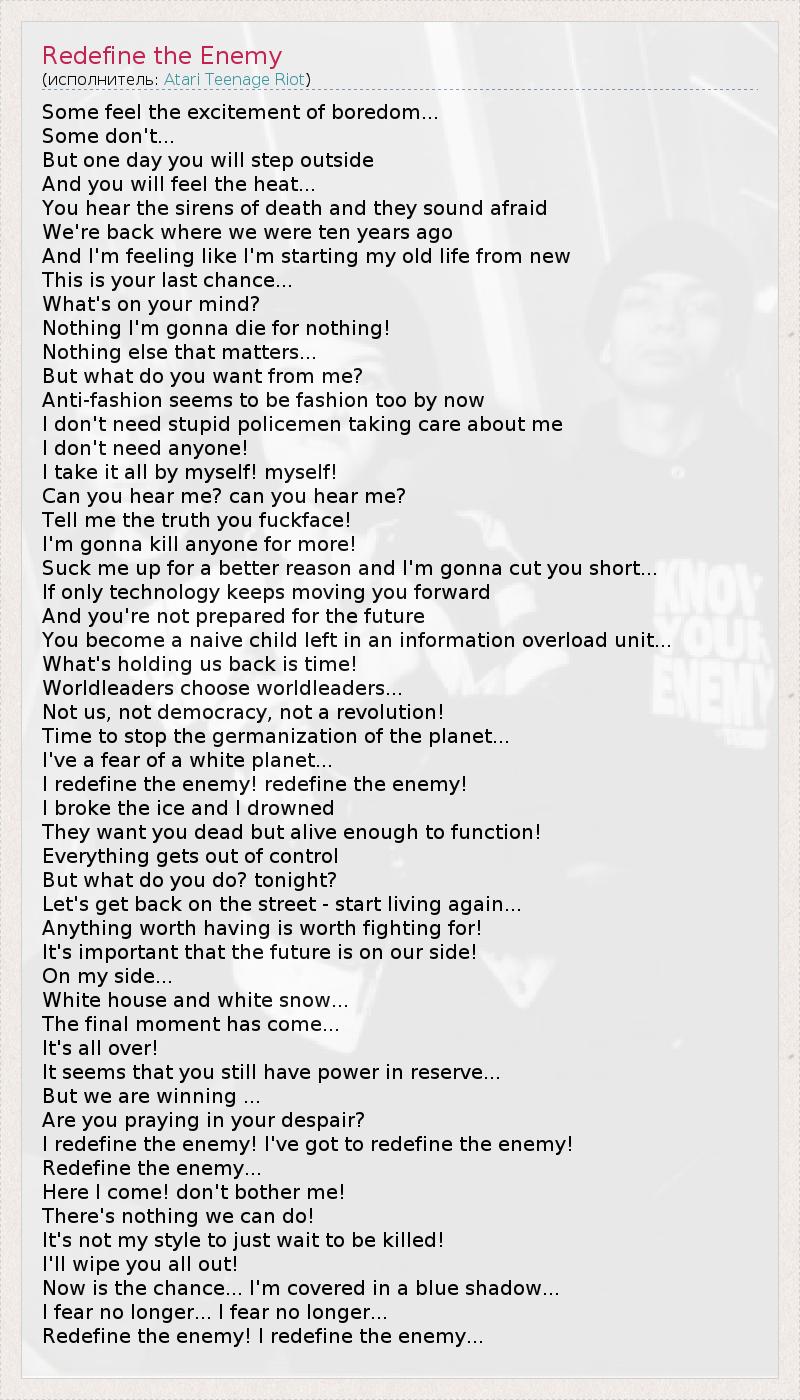 А как ты думаешь, о чем песня "Redefine the Enemy" ?