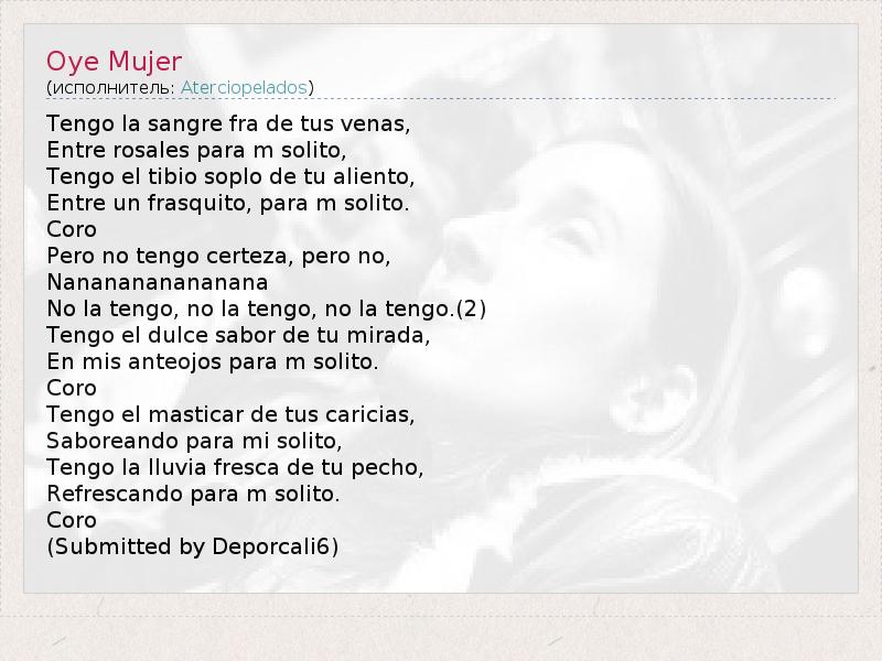 А как ты думаешь, о чем песня "Oye Mujer" ?