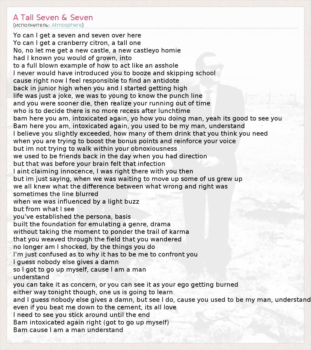 А как ты думаешь, о чем песня "A Tall Seven & Seven" ?