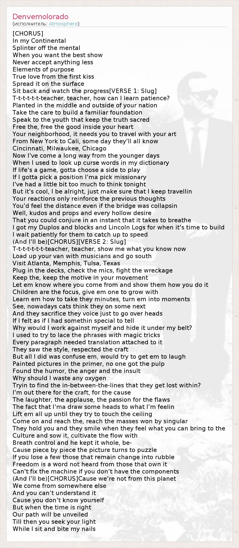 А как ты думаешь, о чем песня "Denvemolorado" ?