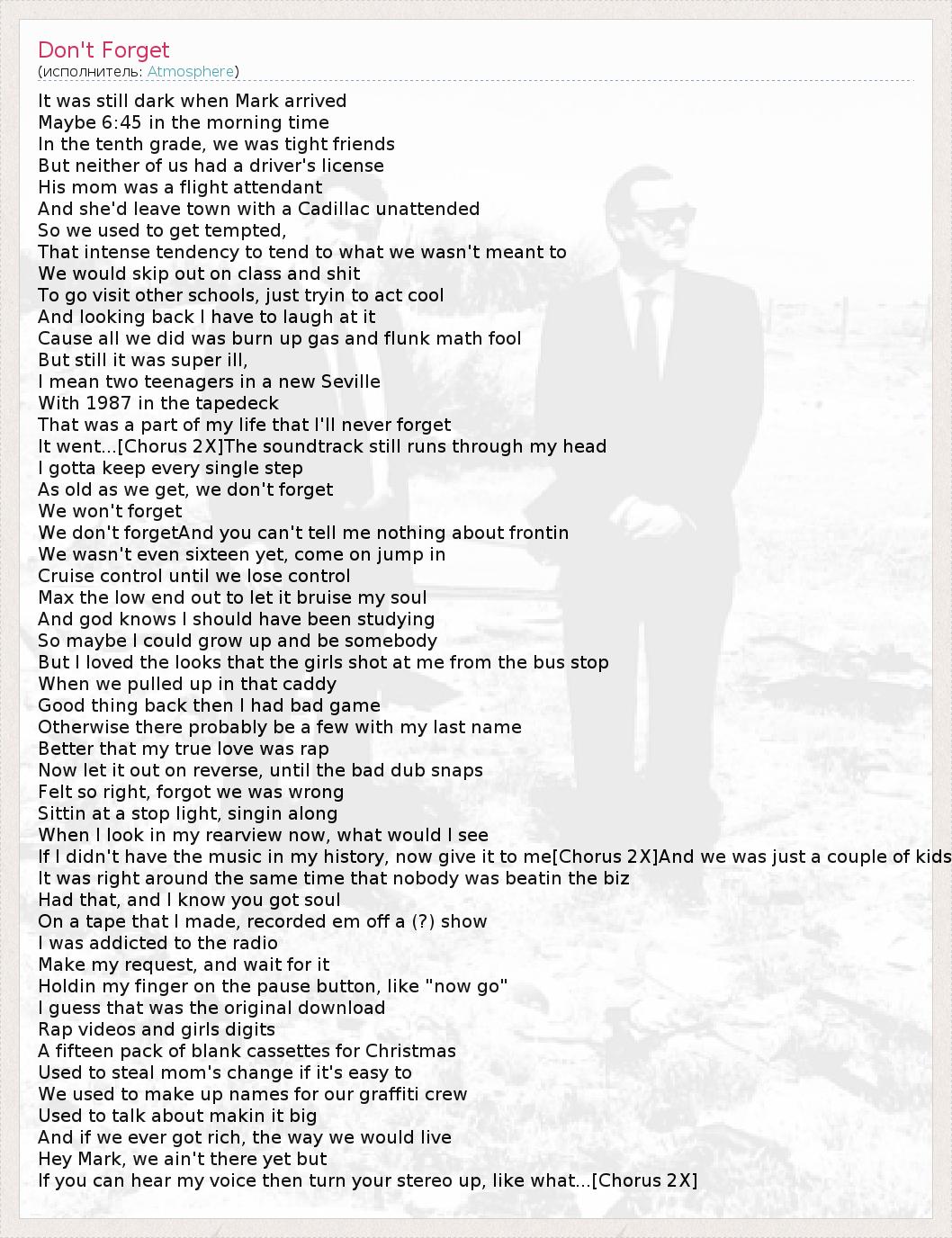It went...[Chorus 2X]The soundtrack still runs through my head