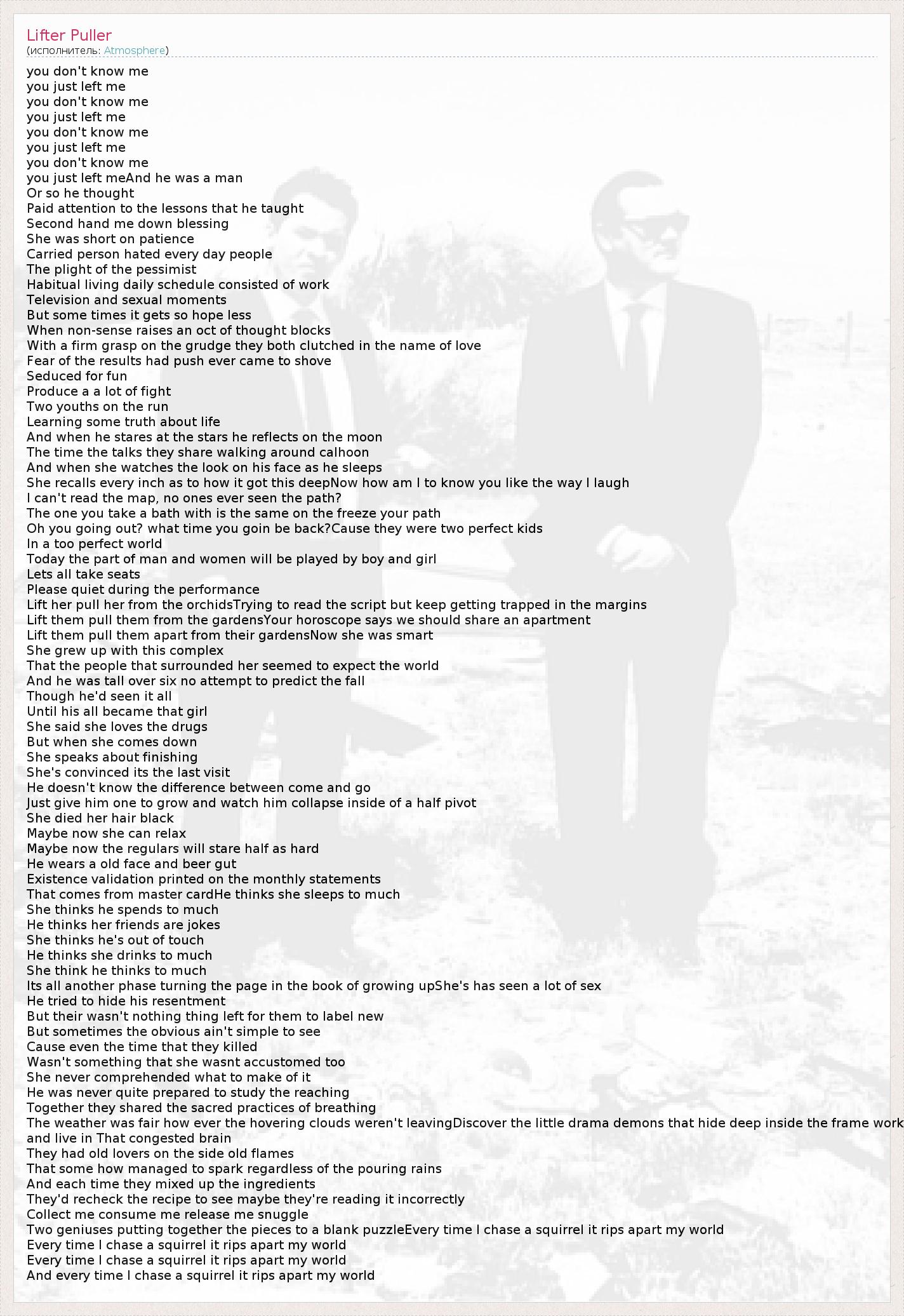 А как ты думаешь, о чем песня "Lifter Puller" ?