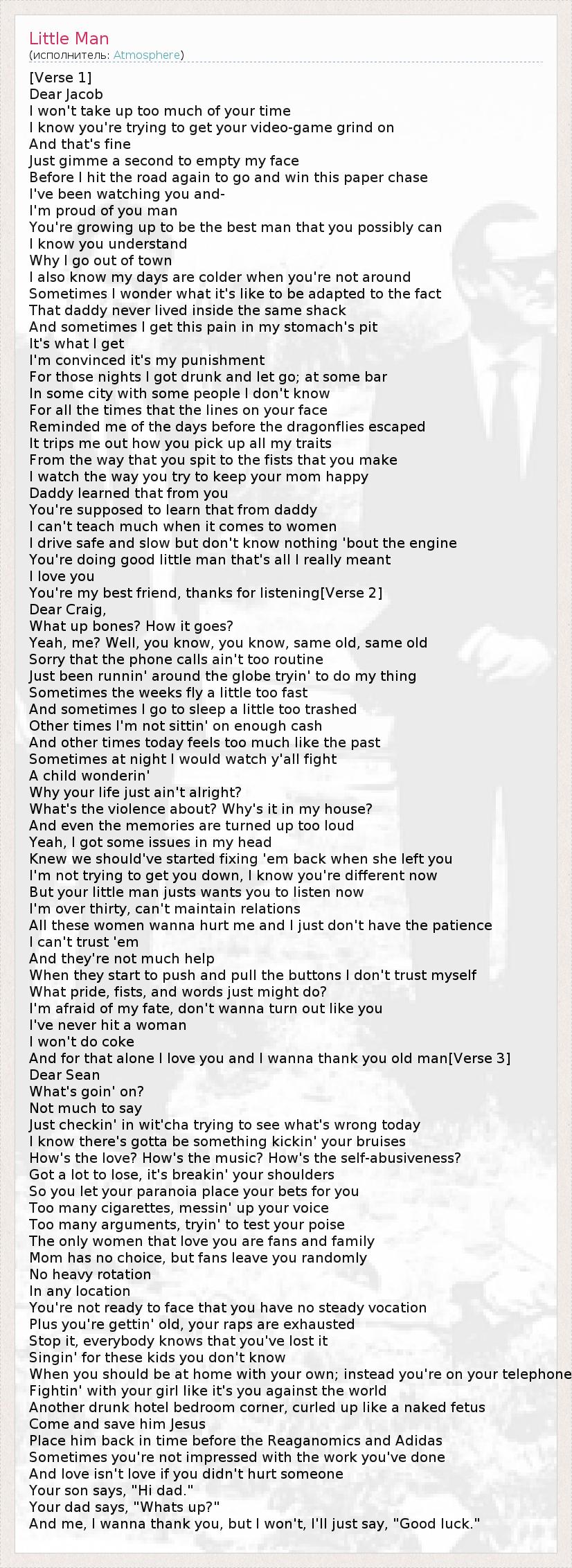 А как ты думаешь, о чем песня "Little Man" ?