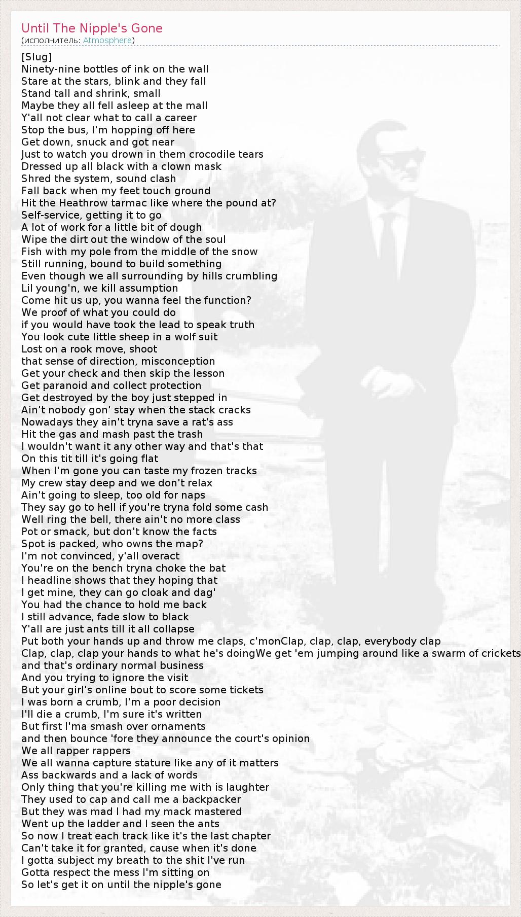 ГлавнаяИсполнителиAtmosphereUntil The Nipple's Gone