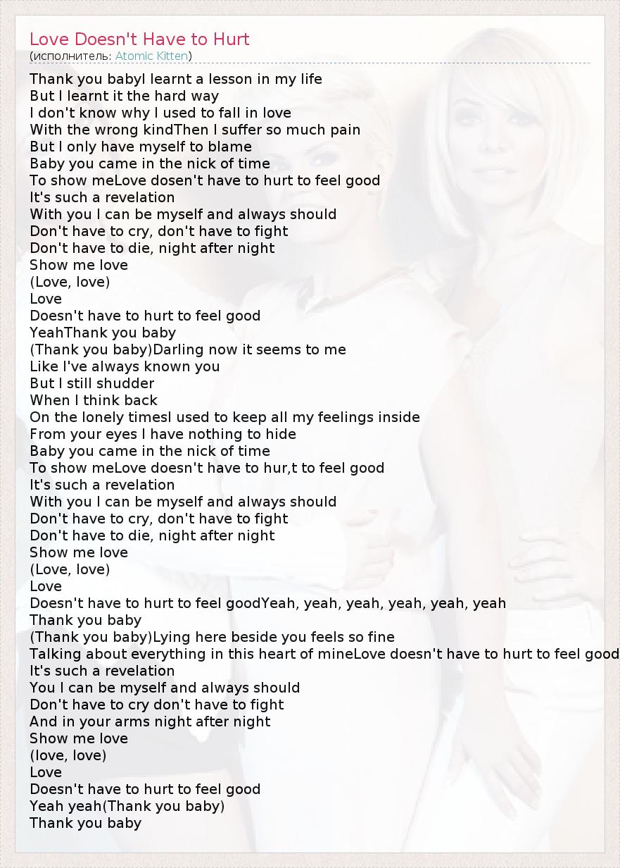 А как ты думаешь, о чем песня "Love Doesn't Have to Hurt" ?