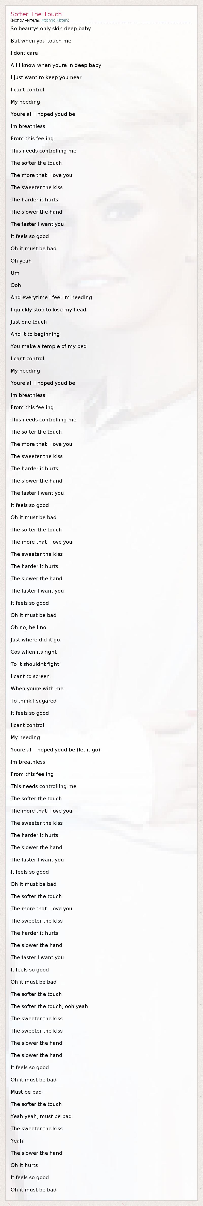А как ты думаешь, о чем песня "Softer The Touch" ?