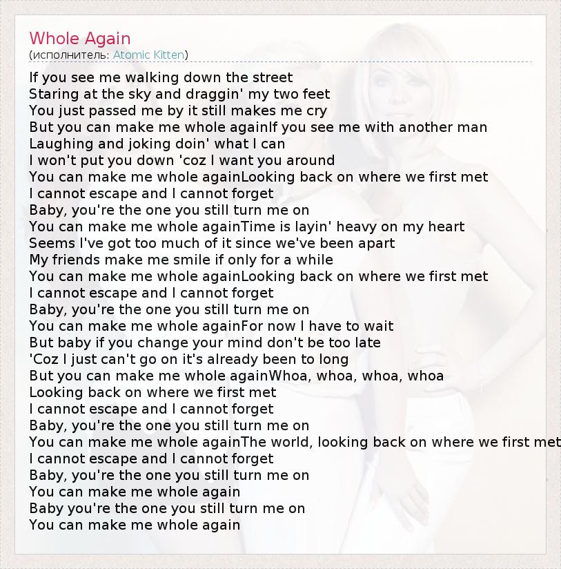 А как ты думаешь, о чем песня "Whole Again" ?