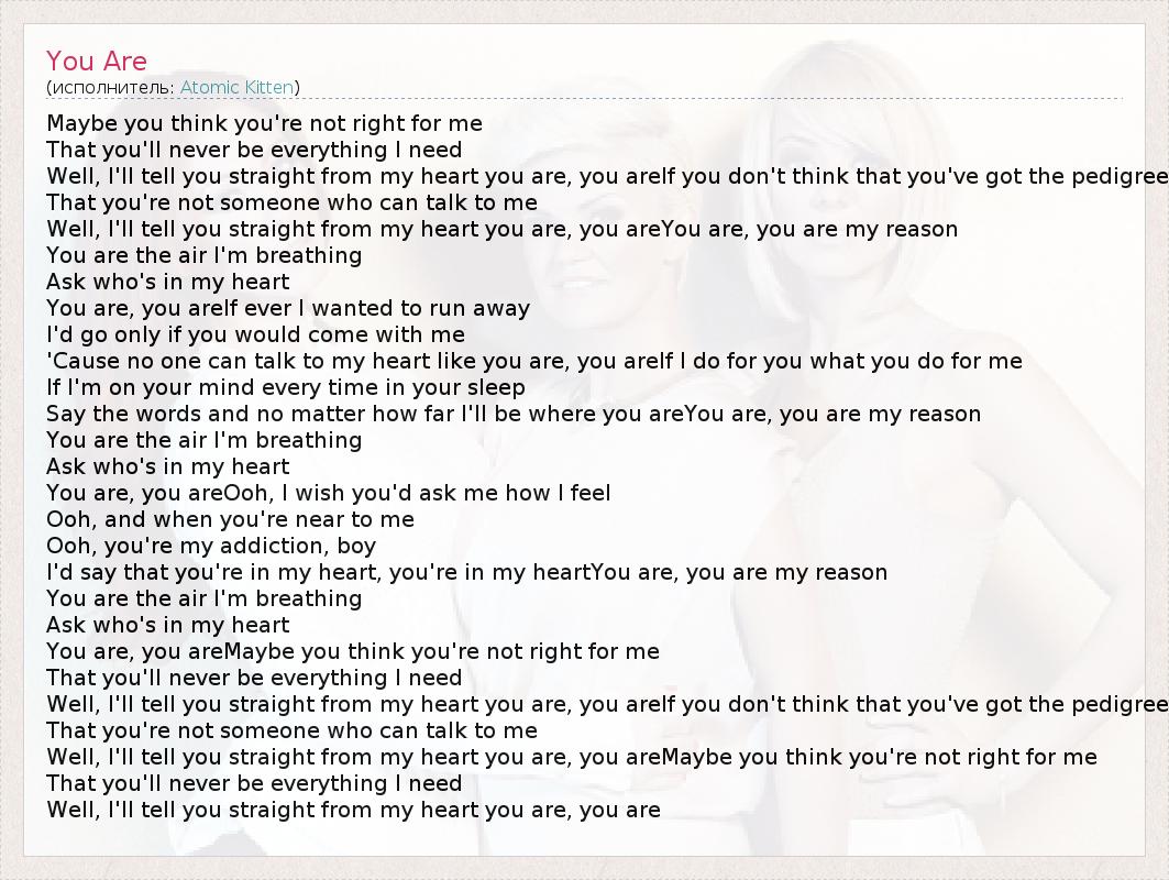 Well, I'll tell you straight from my heart you are, you areYou are, you are my reason