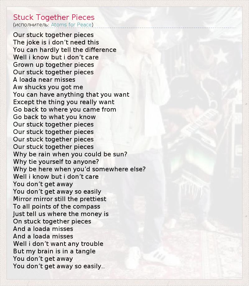 А как ты думаешь, о чем песня "Stuck Together Pieces" ?