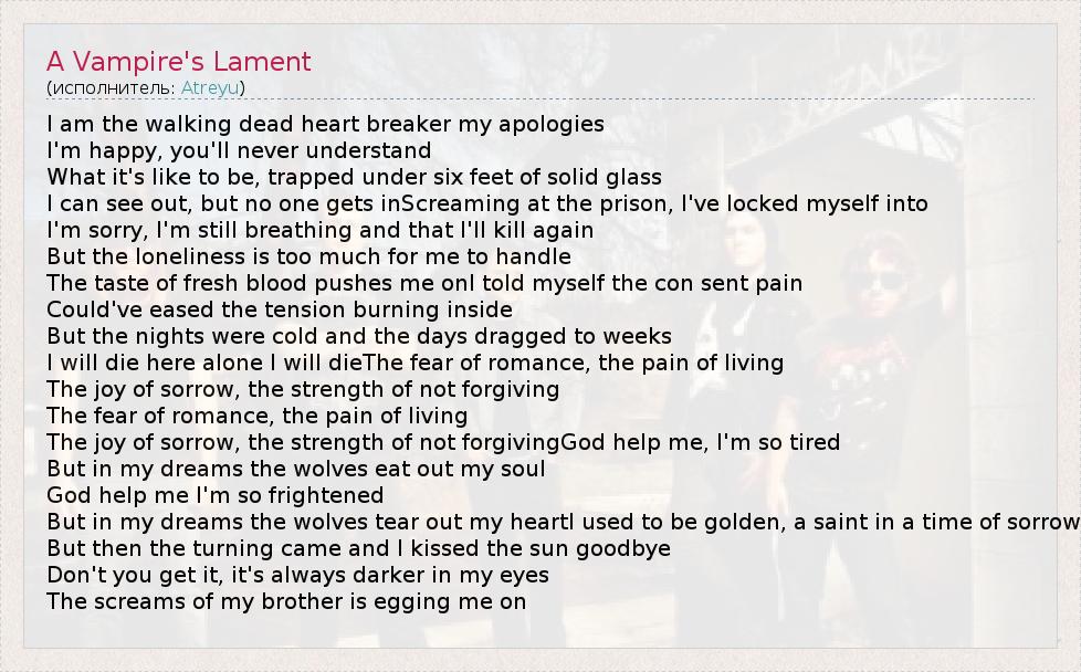 А как ты думаешь, о чем песня "A Vampire's Lament" ?
