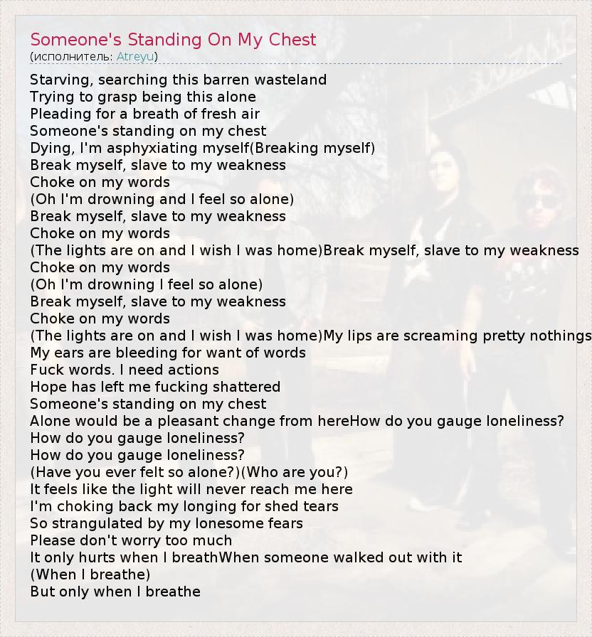 ГлавнаяИсполнителиAtreyuSomeone's Standing On My Chest