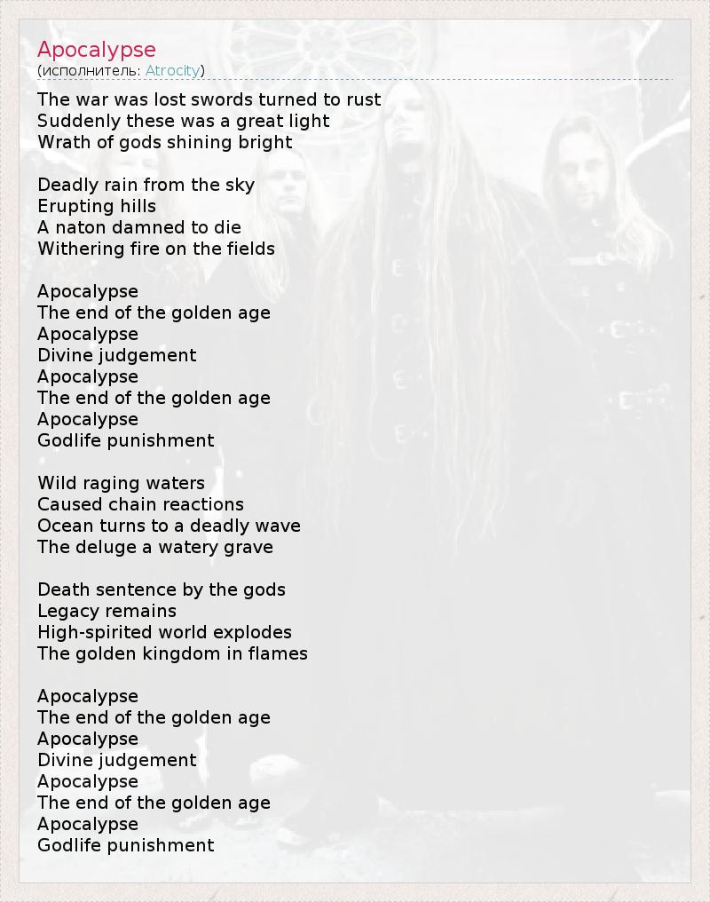 А как ты думаешь, о чем песня "Apocalypse" ?