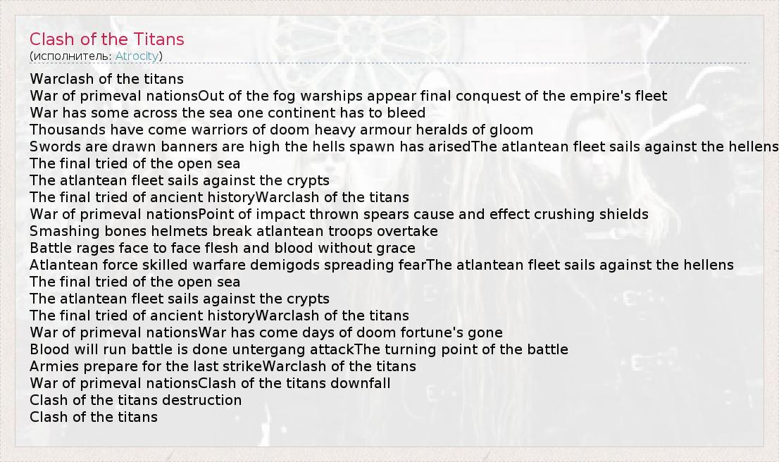 А как ты думаешь, о чем песня "Clash of the Titans" ?