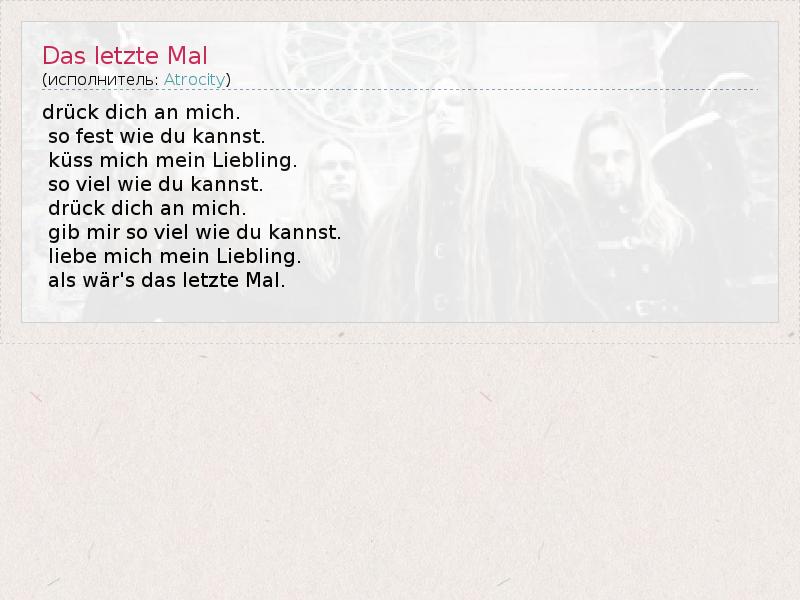 А как ты думаешь, о чем песня "Das letzte Mal" ?
