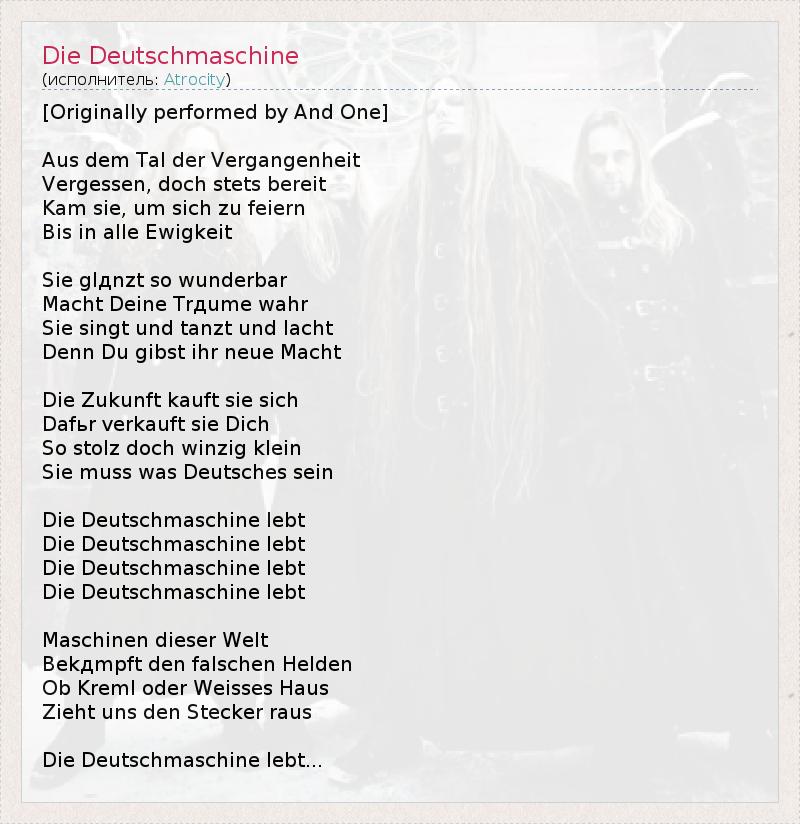 А как ты думаешь, о чем песня "Die Deutschmaschine" ?