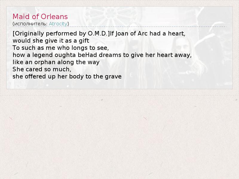А как ты думаешь, о чем песня "Maid of Orleans" ?
