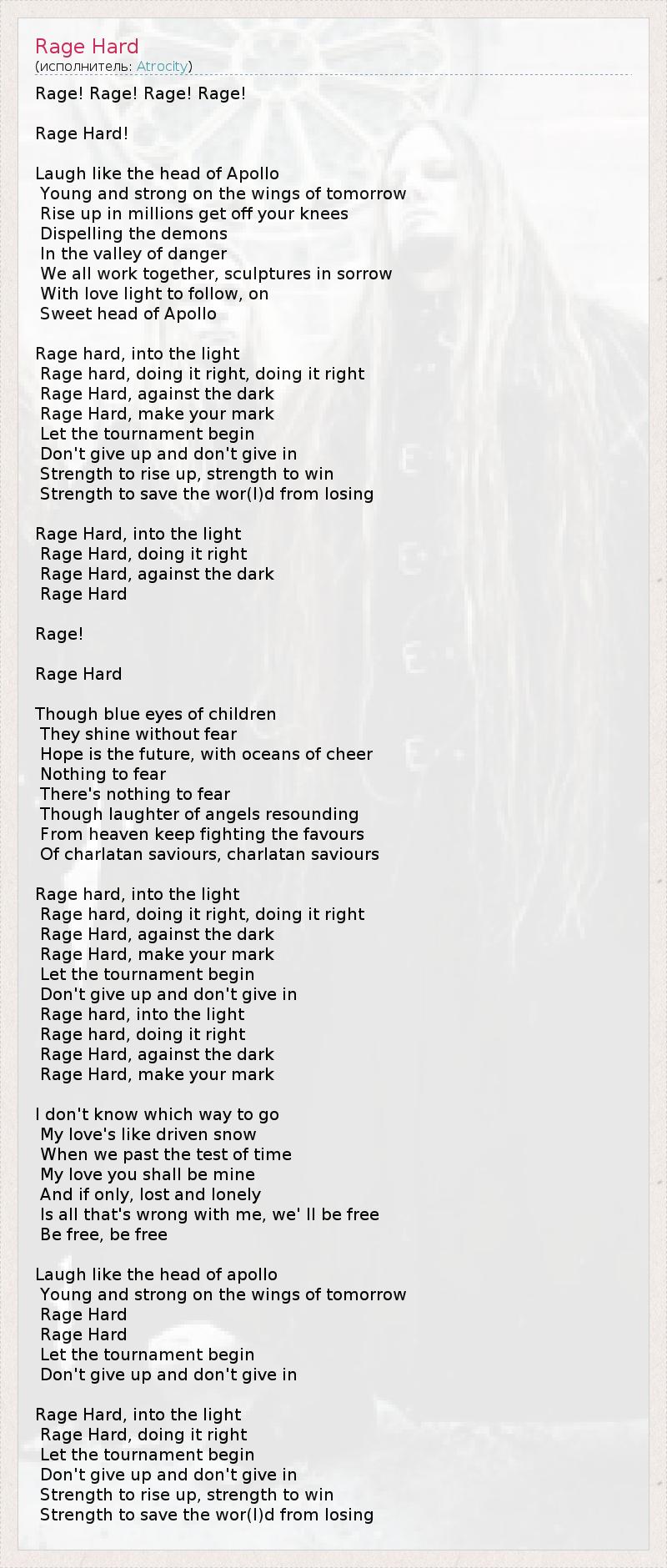 А как ты думаешь, о чем песня "Rage Hard" ?