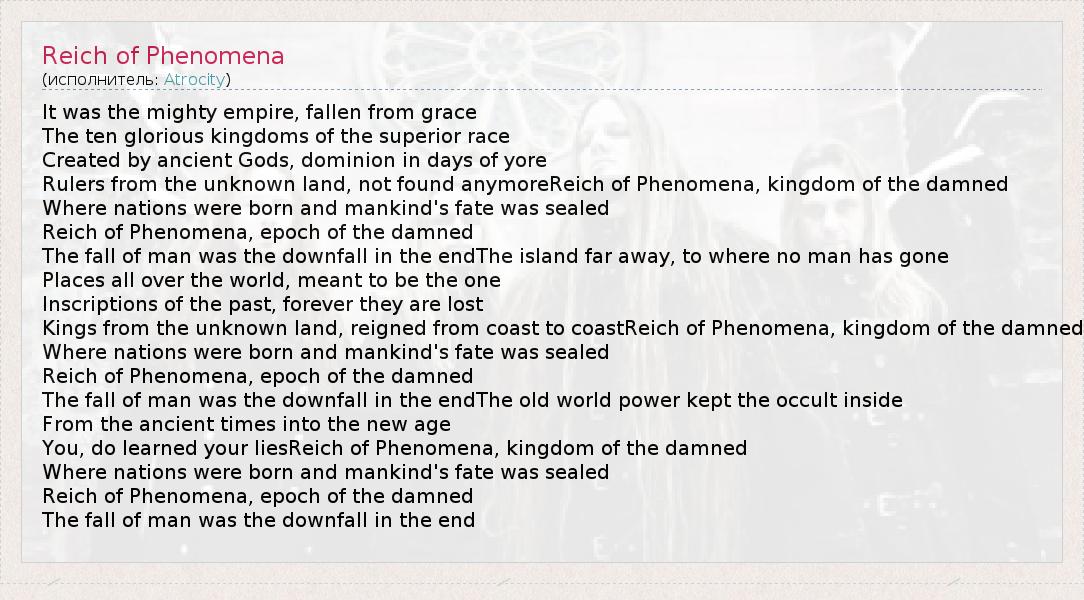 А как ты думаешь, о чем песня "Reich of Phenomena" ?