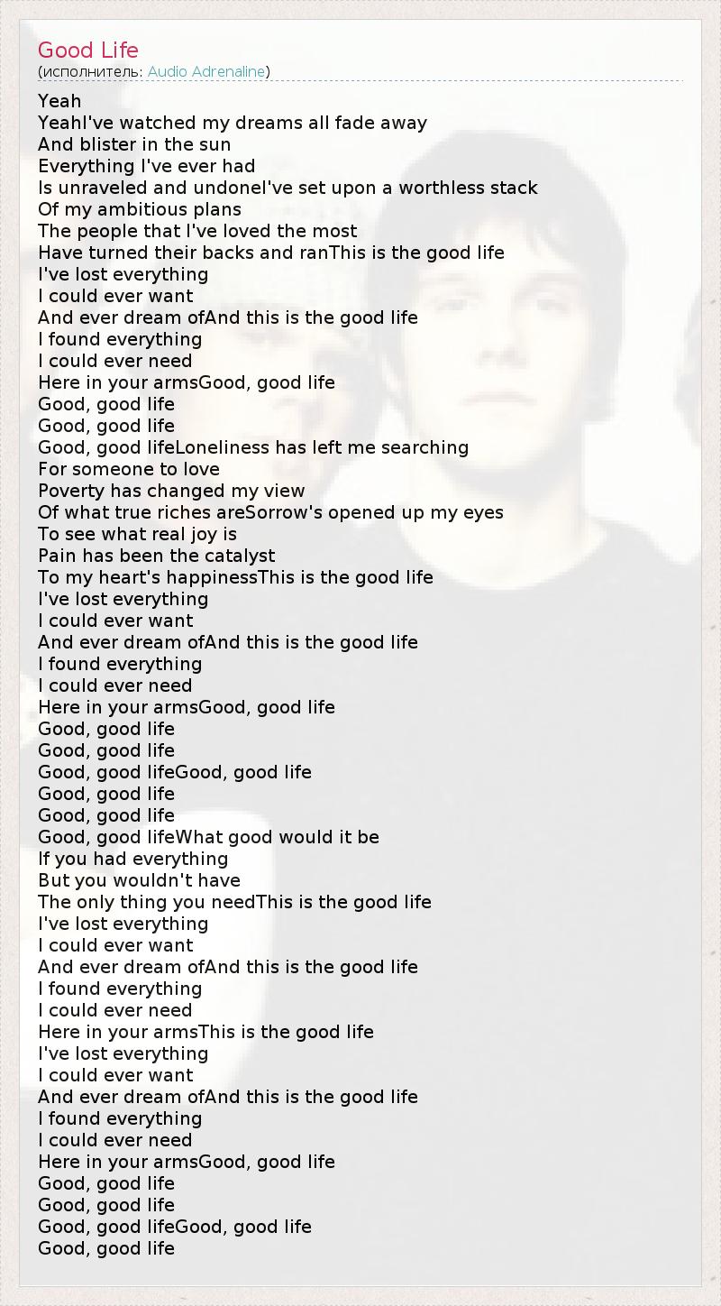 А как ты думаешь, о чем песня "Good Life" ?