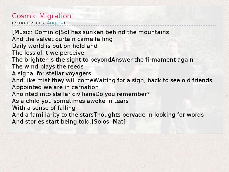 А как ты думаешь, о чем песня "Cosmic Migration" ?