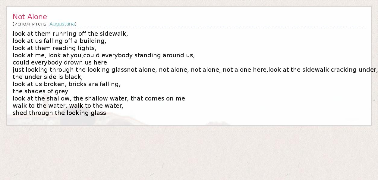 just looking through the looking glassnot alone, not alone, not alone, not alone here,look at the sidewalk cracking under,