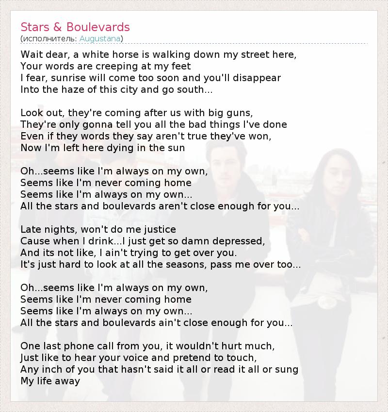 А как ты думаешь, о чем песня "Stars & Boulevards" ?