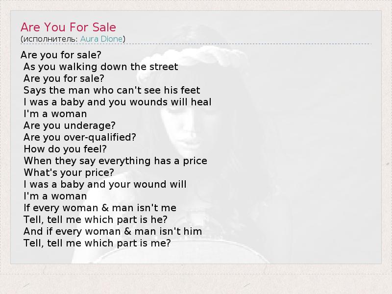 А как ты думаешь, о чем песня "Are You For Sale" ?