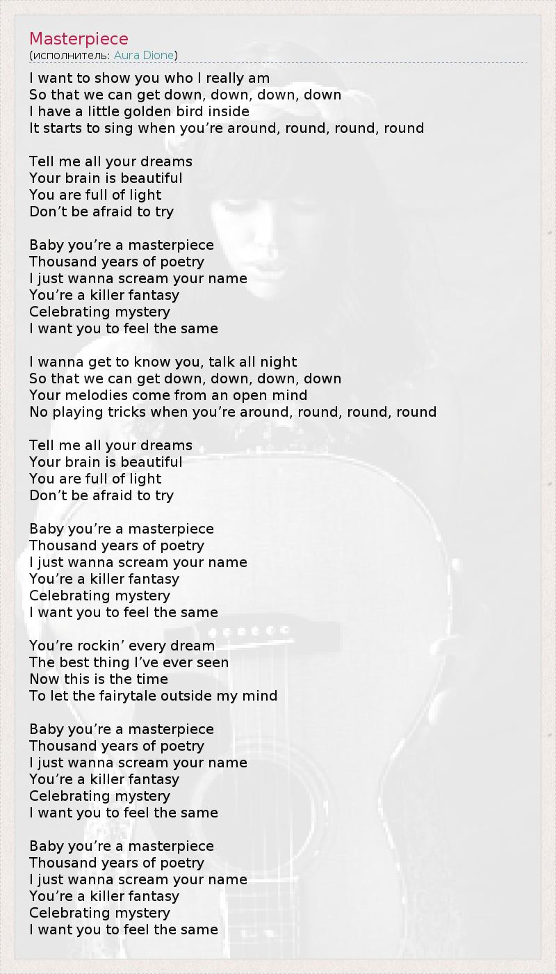 А как ты думаешь, о чем песня "Masterpiece" ?