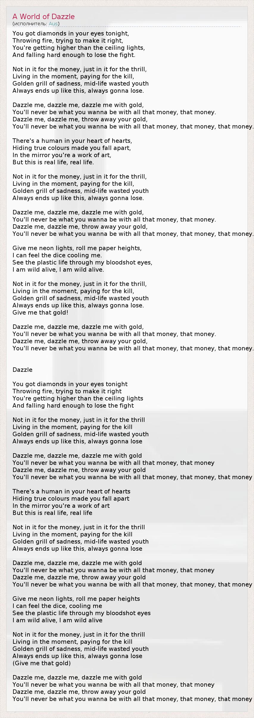 А как ты думаешь, о чем песня "A World of Dazzle" ?
