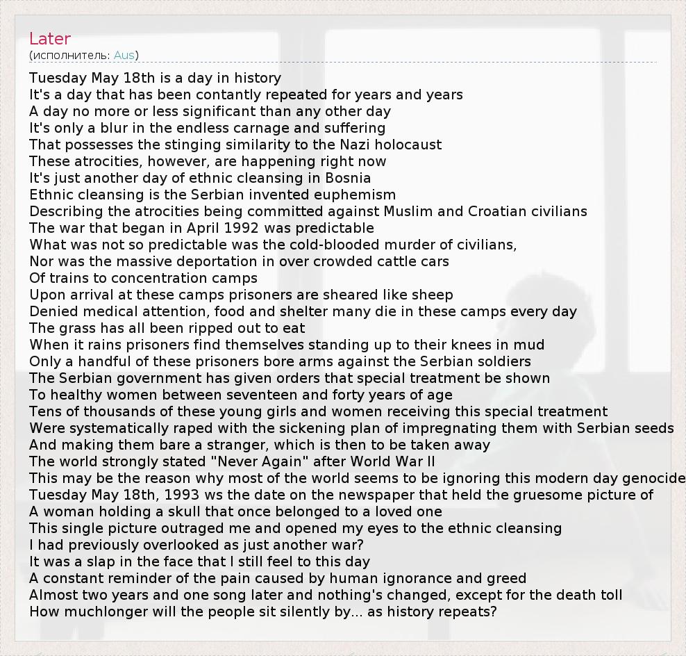 А как ты думаешь, о чем песня "Later" ?