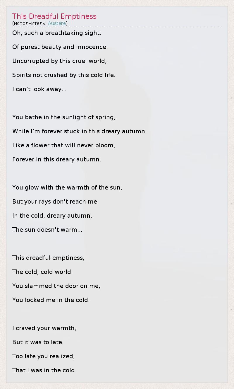 А как ты думаешь, о чем песня "This Dreadful Emptiness" ?