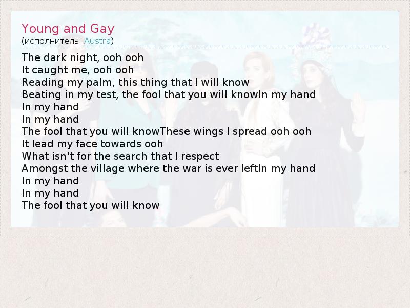 А как ты думаешь, о чем песня "Young and Gay" ?