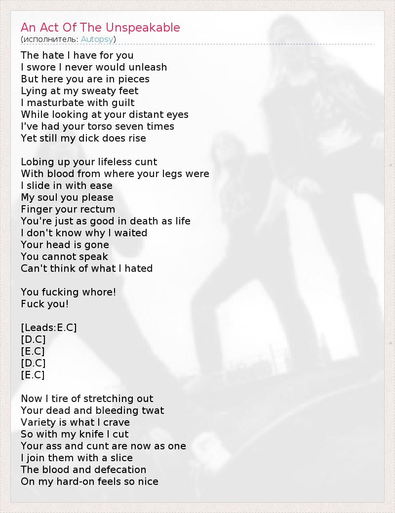 ГлавнаяИсполнителиAutopsyAn Act Of The Unspeakable