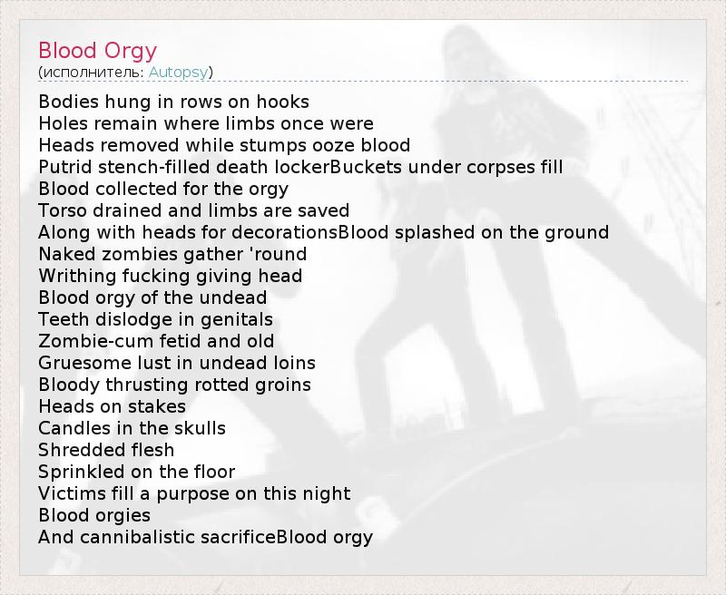 А как ты думаешь, о чем песня "Blood Orgy" ?